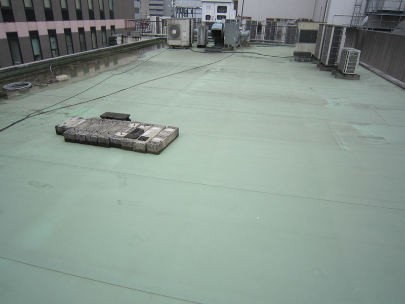 屋上の排水口の口径が細いことで、大雨の翌日には屋上がプール状態になっていました。プール状態を放置することで雨漏りに繋がることがあるため、今回の工事を機に同時に排水口の口径と配管を変更しスムーズに流れるように改善しました。